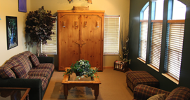 The SOUTH SIDE has 4 bedrooms; all 4 have queen beds. In addition, there are 5 twin beds and 1 full sized bed in the family room downstairs. There is 1 couch that would be suitable for one person, and it has a wet bar in the lower family room with microwave and small fridge.